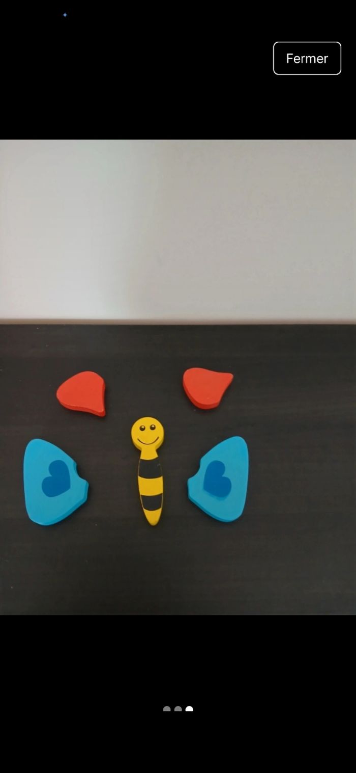 Vend puzzle 1er age 5 pieces. En bonne état et complet Il est en bois.