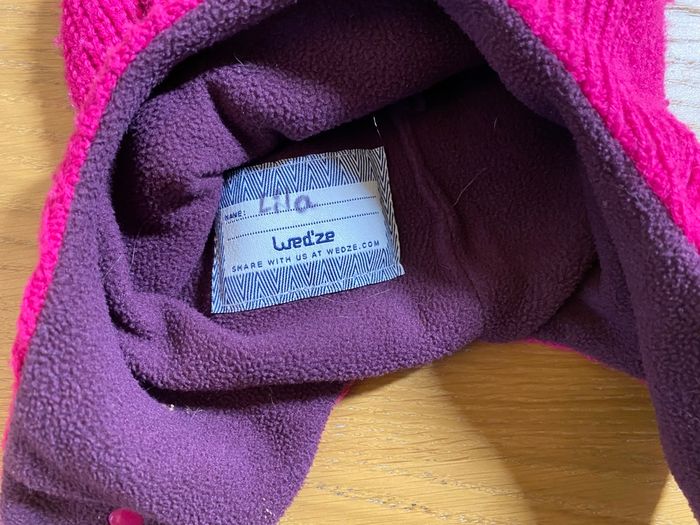 Bonnet rigolo fille Marque : décathlon / Wed’ze Taille : 2/3 ans Couleur : fuchsia/violet