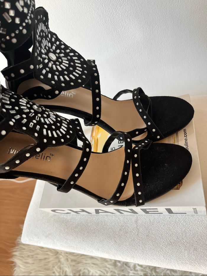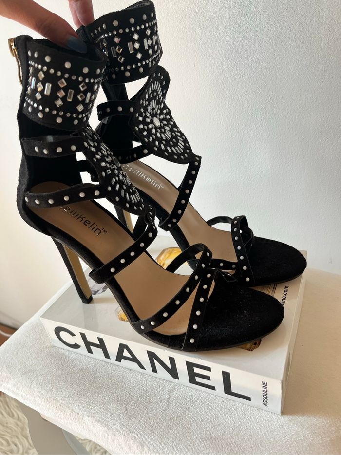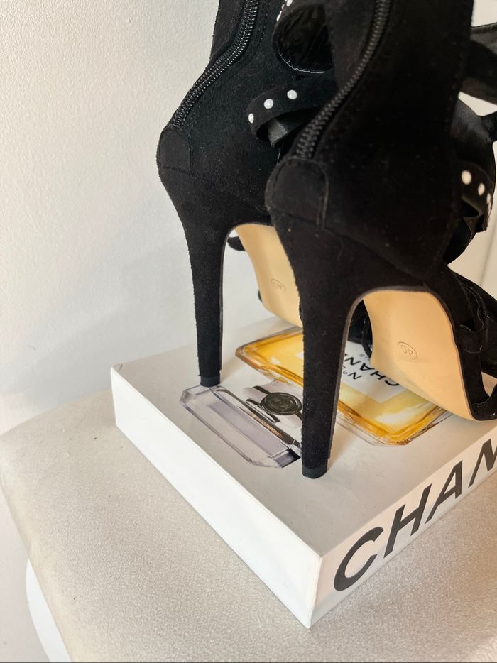 Sandales montantes suédine cleopatre noir perles strass Public Desire Asos T40 TBE 🖤 - photo numéro 1
