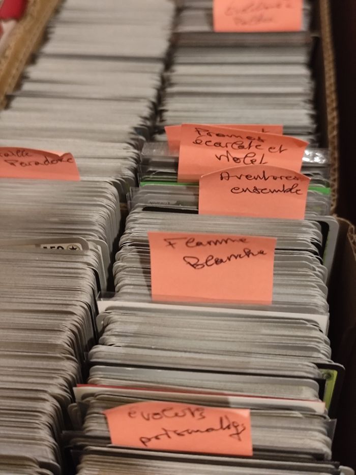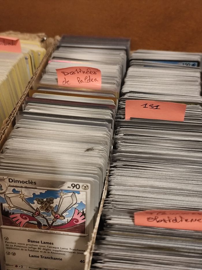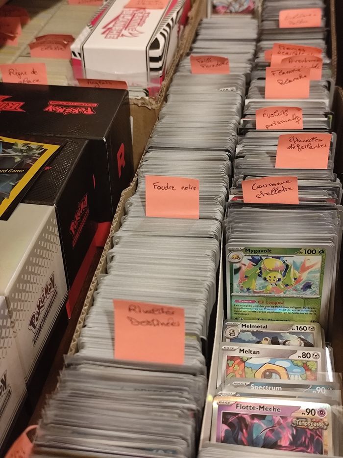🐲 Envoyez moi vos listes de cartes manquantes, co unco rare Holo reverse ou hit, je vous aiderai à compléter vos collections ! Plus de 10000 cartes disponibles 🔥 💸 Tarifs ↪️Bloc EV et MEG sauf 151, ev08.5 et ev10 : Co/unco: 10ct Rare: 20ct Reverse/Holo : 50ct Ex: 2€ ↪️Bloc EB + 151, ev08.5, ev10 : Co/unco: 15ct Rare: 25ct Reverse/Holo : 65ct Ex: 2,5€ ↪️Pour toutes les cartes, si la côte semble supérieure au prix indiqué au dessus, le prix est environ celui de cardmarket. Pour les hits, environ prix de cardmarket ✨ Plus d'articles sont disponibles sur mon profil, n'hésitez pas à faire des lots, et pensez à vous abonner pour ne pas manquer les prochaines mises en vente au meilleur prix 🗂️ Lien vers mon serveur discord pour avoir accès aux meilleures offres,infos, à des devinettes quotidiennes et à des échanges entre membres : https://discord.gg/hma7dVMFQD 🔗 Utilisez #ledamssshop_poké pour retrouver tous mes articles pokémon, #ledamssshop_carte pour voir toutes les cartes Séries disponibles : Épée et Bouclier EB01 Clash des Rebelles EB02 Ténèbres Embrasées EB03 La Voie du Maître EB03.5 Voltage Éclatant EB04 Destinées Radieuses EB04.5 Styles de Combat EB05 Règne de Glace EB06 Évolution Céleste EB07 Célébrations EB07.5 Poing de Fusion EB08 Stars Étincelantes EB09 Astres Radieux EB10 Pokémon GO EB10.5 Origine Perdue EB11 Tempête Argentée EB12 Zénith Suprême EB12.5 Écarlate et Violet EV01 Évolutions à Paldea EV02 Flammes Obsidiennes EV03 151 EV03.5 Faille Paradoxe EV04 Destinées de Paldea EV04.5 Forces Temporelles EV05 Mascarade Crépusculaire EV06 Fable Nébuleuse EV06.5 Couronne Stellaire EV07 Étincelles Déferlantes EV08 Évolutions Prismatiques EV08.5 Aventures Ensemble EV09 Rivalités Destinées EV10 Foudre Noire / Flamme Blanche EV10.5 Méga Évolutions ME01