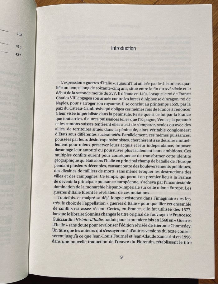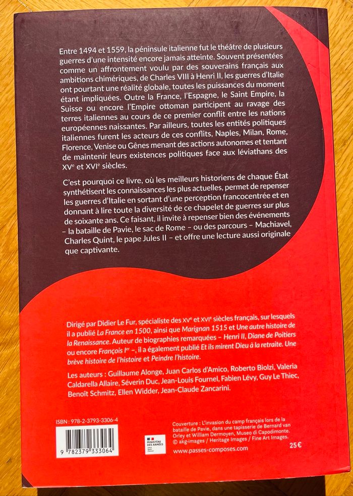 Entre 1494 et 1559, la péninsule italienne fut le théâtre de plusieurs guerres d'une intensité encore jamais atteinte. Souvent présentées comme un affrontement voulu par des souverains français aux ambitions chimériques, de Charles VIII à Henri II, les guerres d'Italie ont pourtant une réalité globale, toutes les puissances du moment étant impliquées. Outre la France, l'Espagne, le Saint Empire, la Suisse ou encore l'Empire ottoman participent au ravage des terres italiennes au cours de ce premier conflit entre les nations européennes naissantes. Par ailleurs, toutes les entités politiques italiennes furent les acteurs de ces conflits, Naples, Milan, Rome, Florence, Venise ou Gênes menant des actions autonomes et tentant de maintenir leurs existences politiques face aux léviathans des XVe et XVIe siècles. C'est pourquoi ce livre, où les meilleurs historiens de chaque État synthétisent les connaissances les plus actuelles, permet de repenser les guerres d'Italie en sortant d'une perception francocentrée et en donnant à lire toute la diversité de ce chapelet de guerres sur plus de soixante ans. Ce faisant, il invite à repenser bien des événements - la bataille de Pavie, le sac de Rome - ou des parcours - Machiavel, Charles Quint, le pape Jules II - et offre une lecture aussi originale que captivante.