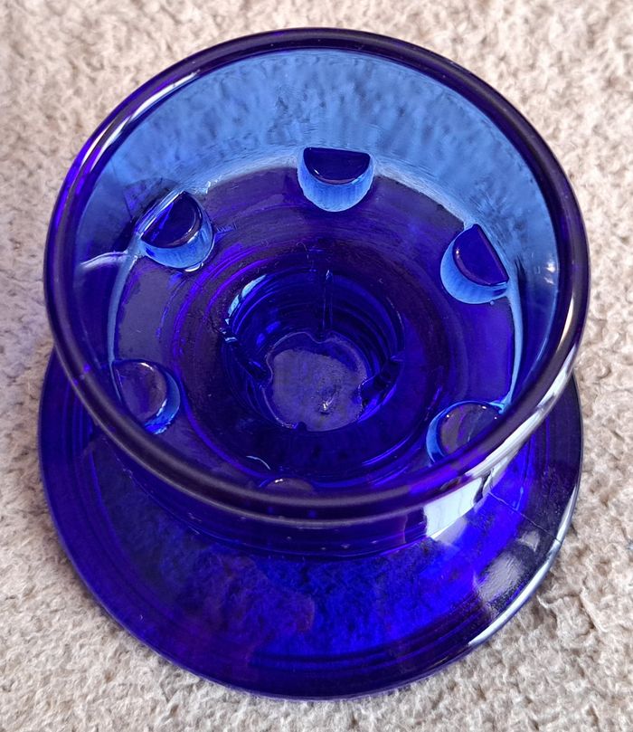 Ancien bougeoir en verre bleu - photo numéro 3