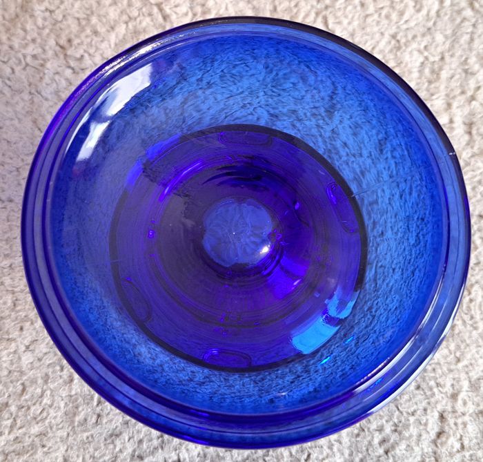 Ancien bougeoir en verre bleu - photo numéro 1