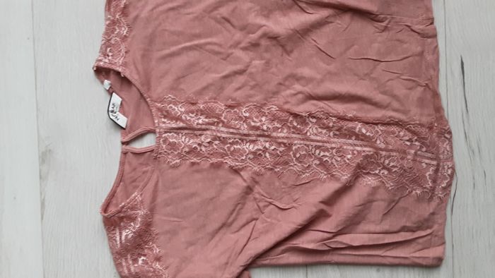 Vêtement femme tee-shirt manches courtes top haut vieux rose Naf Naf taille XS - photo numéro 1