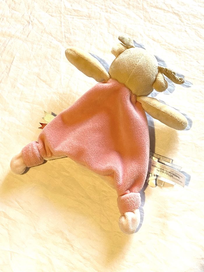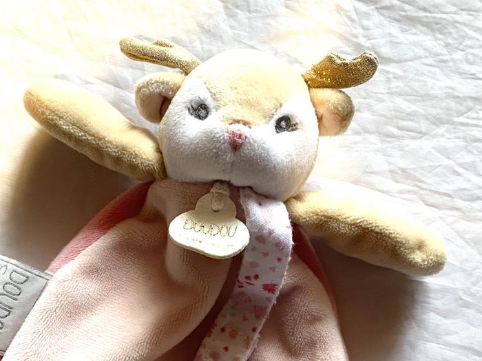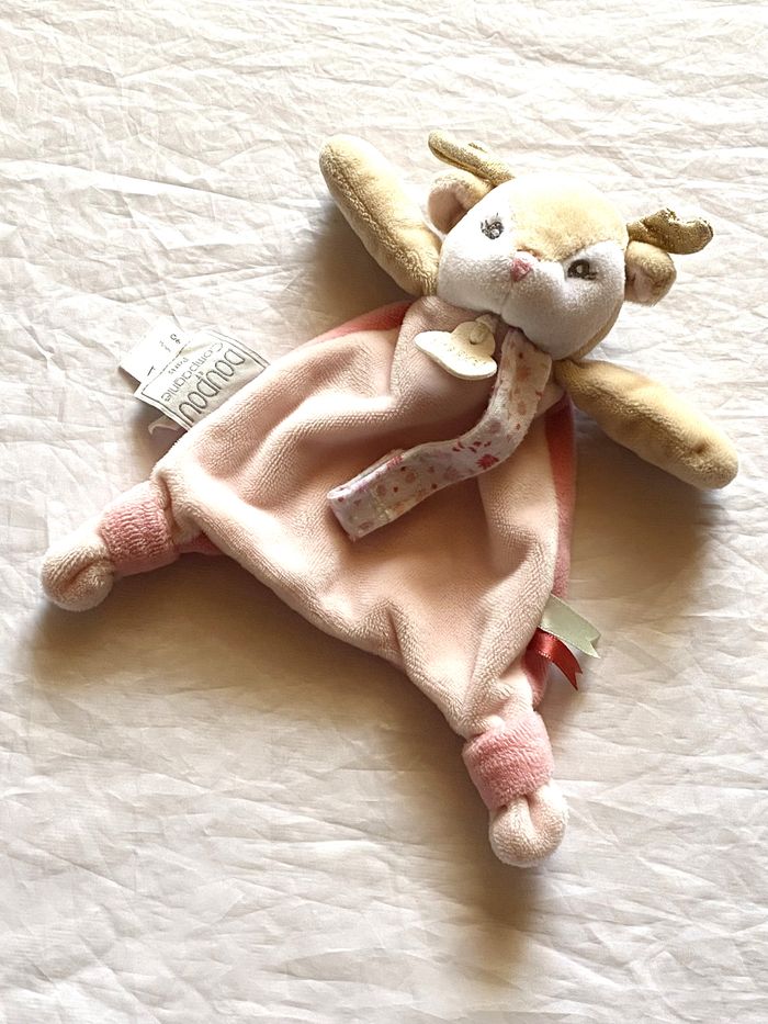 Petit Cerf Marron "Doudou" avec une Petite Combinaison Rose "Animal - Faune".