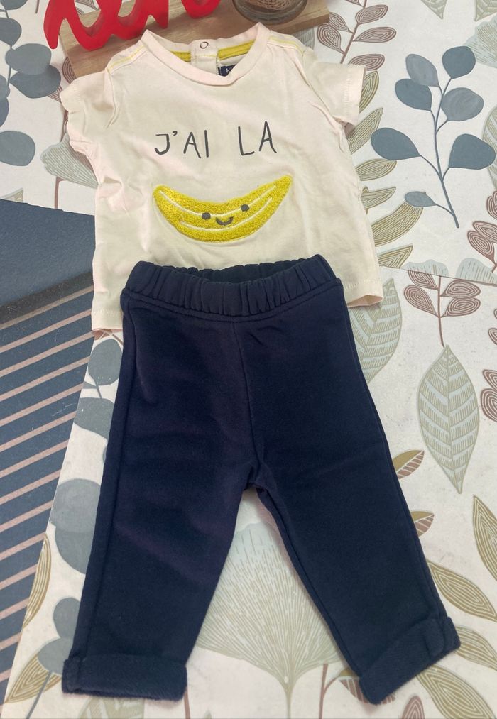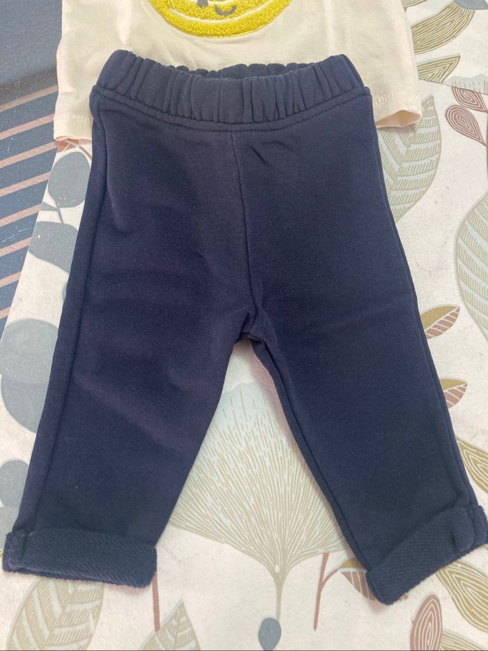 📦 ensemble composé du pantalon de jogging et de son t-shirt 🎨 bleu marine et crème Taille 3 mois KIABI 🚨remise sur lot activée ✨ envoi rapide et soigné