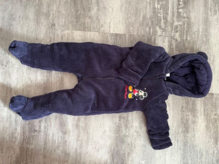 Combi pilote Mickey neuve sans étiquette car Mr a grandi trop vite.... taille 6 mois Juste passée en machine 1 fois avant d'essayer de la mettre Entièrement en polaire, capuche avec 2 petites oreilles