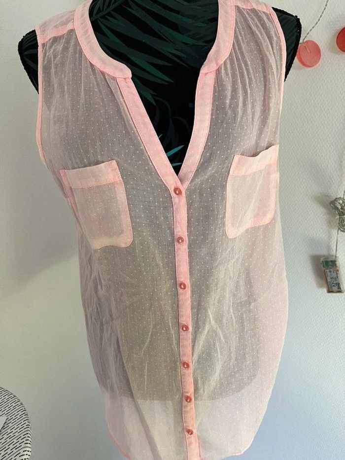 blouse camaïeu rose pâle à pois blancs Très bon état Taille 38