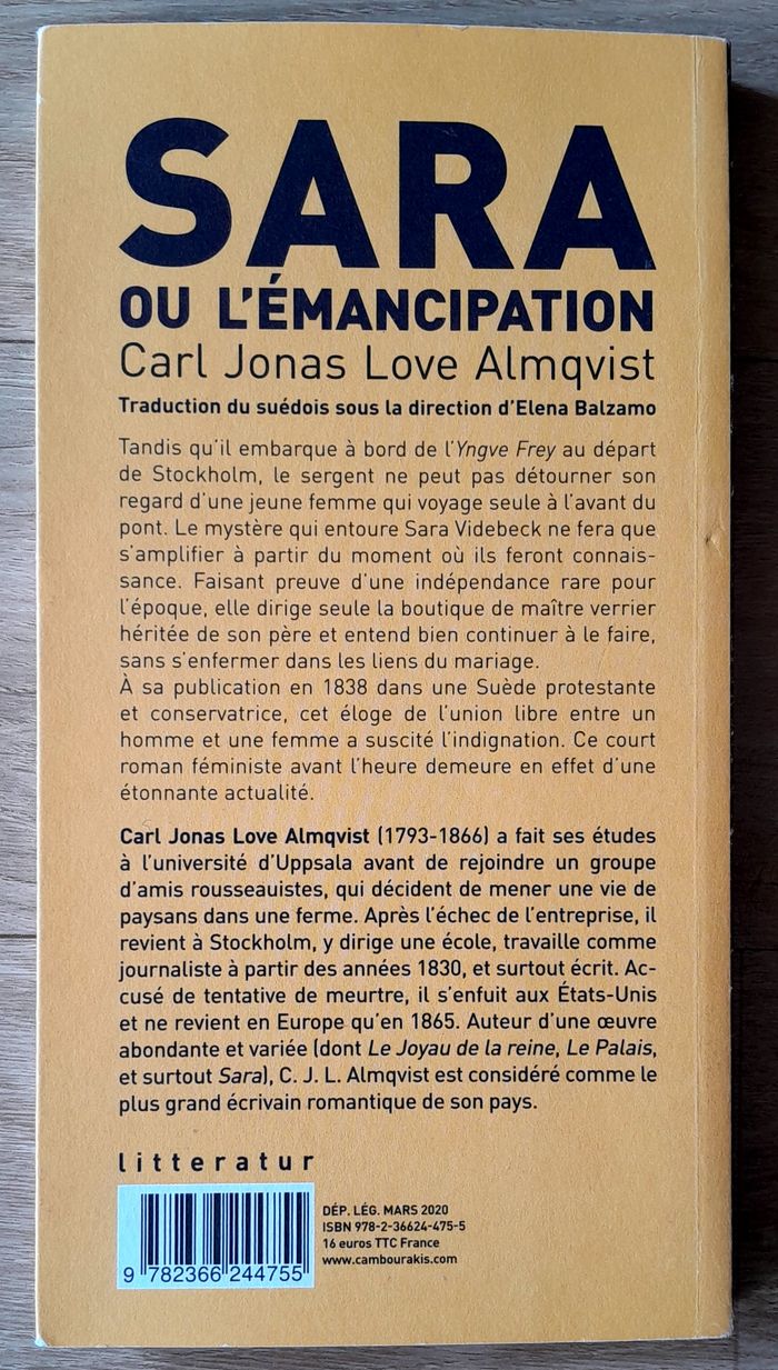 Sara ou l'émancipation - Carl Jonas Love Almqvist (court roman féministe)