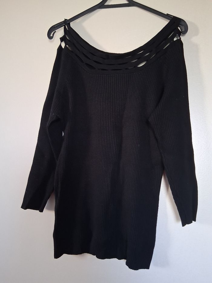 Pull col échancré. Manche 3/4. Aspect côtelé. En acrylique polyester Noir T-3 sur étiquette Excellent état