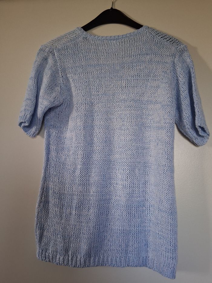 Pull maille ajouré bleu et blanc  "t- S" - photo numéro 2