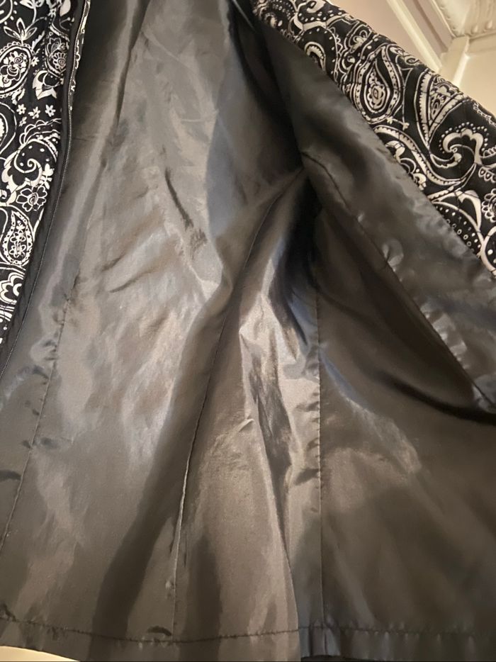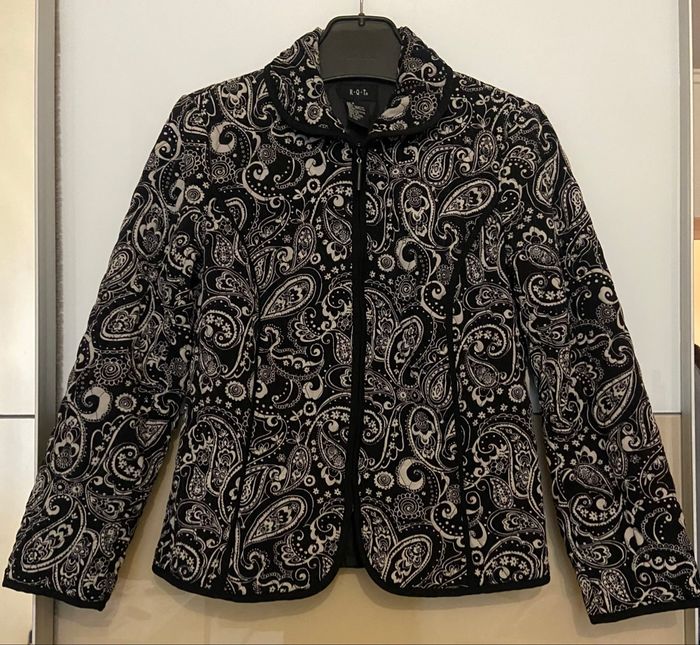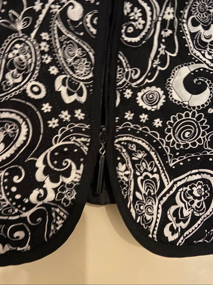Veste imprimée cachemire de couleur noire et grise Taille : S Fermeture éclaire Polyester Dimensions 40x 59 cm