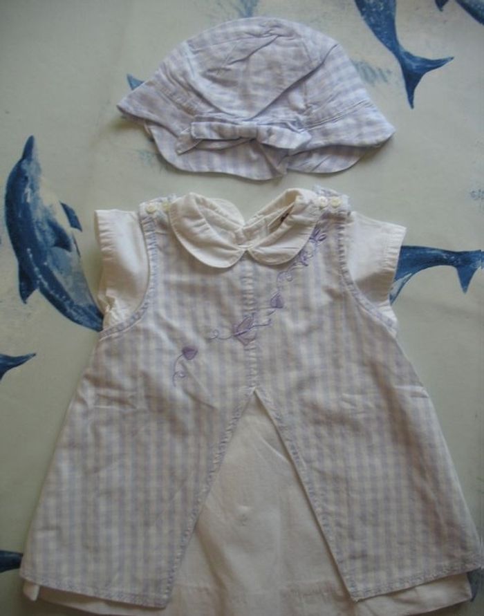 ENSEMBLE 2 PCS BÉBÉ FILLE : ROBE BLANCHE ET MAUVE + CHAPEAU "AUBISOU BY AUBERT" - 6 MOIS - n°14