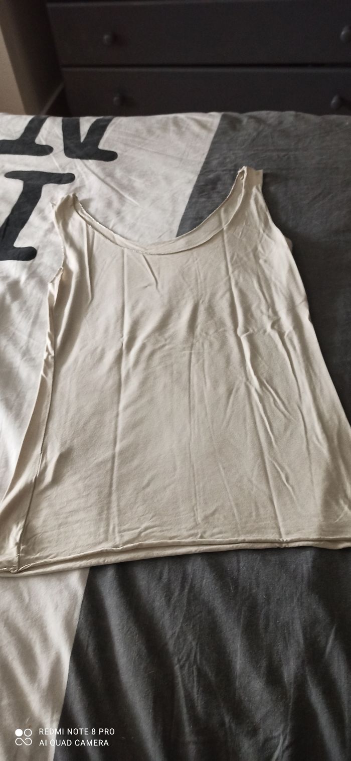 Vends un débardeur beige t. 38 lisere argenté sur les manches