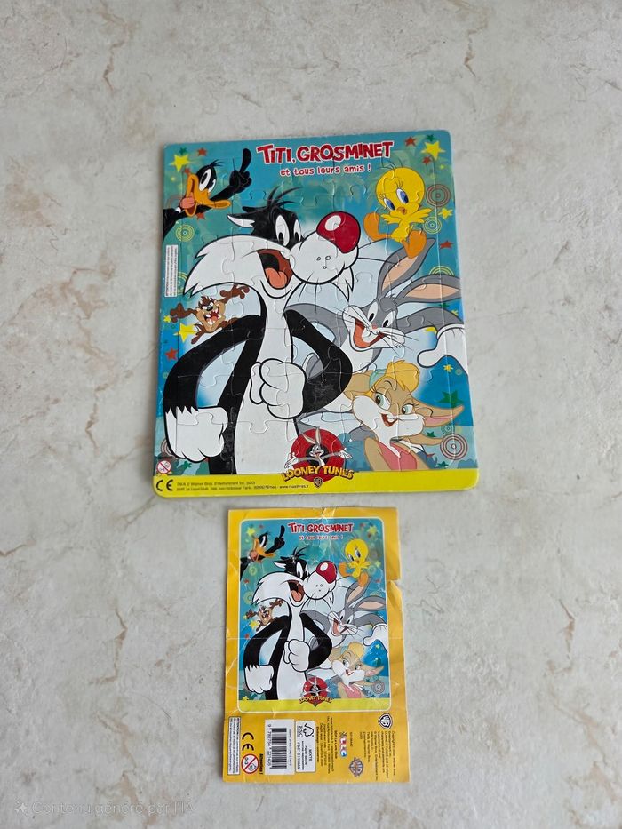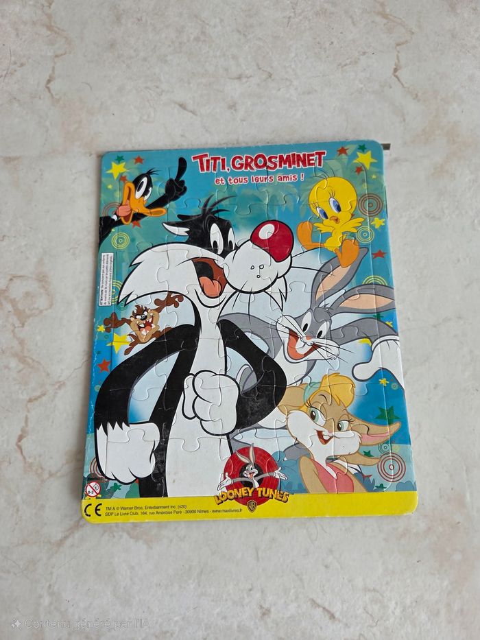 🚩💰 Réductions activées sur les lot 🚩 ➡️ Envoi rapide et soigné puzzle Looney Tunes mettant en scène Titi, Grosminet, Bugs Bunny, Daffy Duck et d'autres amis. C'est un puzzle de 35 pièces, idéal pour les jeunes fans de ces personnages emblématiques. Le puzzle est en bon état, Il est complet ⚠️ Attention : Ne convient pas aux enfants de moins de 3 ans en raison des petites pièces. Parfait pour développer la motricité fine et la reconnaissance des formes chez les enfants. Il fera également le bonheur des collectionneurs ou des nostalgiques ! Marque : Looney Tunes / Warner Bros