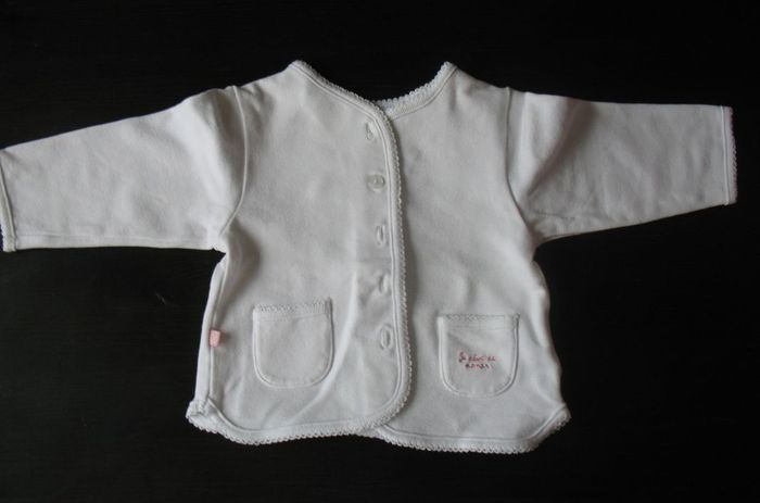 ENSEMBLE 2 PCS BÉBÉ FILLE : ROBE MC MAUVE "DPAM" + GILET BLANC "OBAIBI" - 6 MOIS - n°16 - photo numéro 3