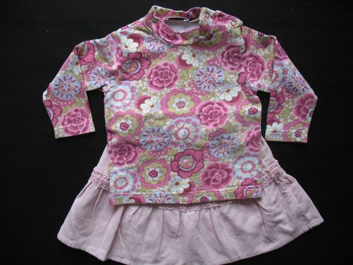 #6Mois_Bébé_Fille_Nathg2210 ENSEMBLE 2 PCS BÉBÉ FILLE : JUPE ROSE + TEE SHIRT ML A FLEURS "GRAIN DE BLE" - 6 MOIS - n°18 Jupe ample en velours rose - Liserai dentelle dans le milieu - Taille élastique - Matière : 100% coton. Tee shirt rose à fleurs - Col montant - Pressions épaule - Matière : 95% coton et 5% élasthanne. Article d’occasion en très bon état - Sans trou - Ni tache - Lavé et repassé pour la vente. Possibilité d'envoyer d'autres photos sur simple demande. Maison non-fumeur - Sans animaux. Réduction lot activée. Allez voir mes autres ventes, je vide les placards. Beaucoup de vêtements de marque et beaucoup de jouets. Remise en mains propres ou possibilité d'envoi au tarif en vigueur à votre charge. Retour Refusé. Pour tout renseignement, n'hésitez pas à me contacter, je répondrai volontiers à vos questions. Réponse Assurée. Pour Consulter mes autres annonces tapez Nathg2210.