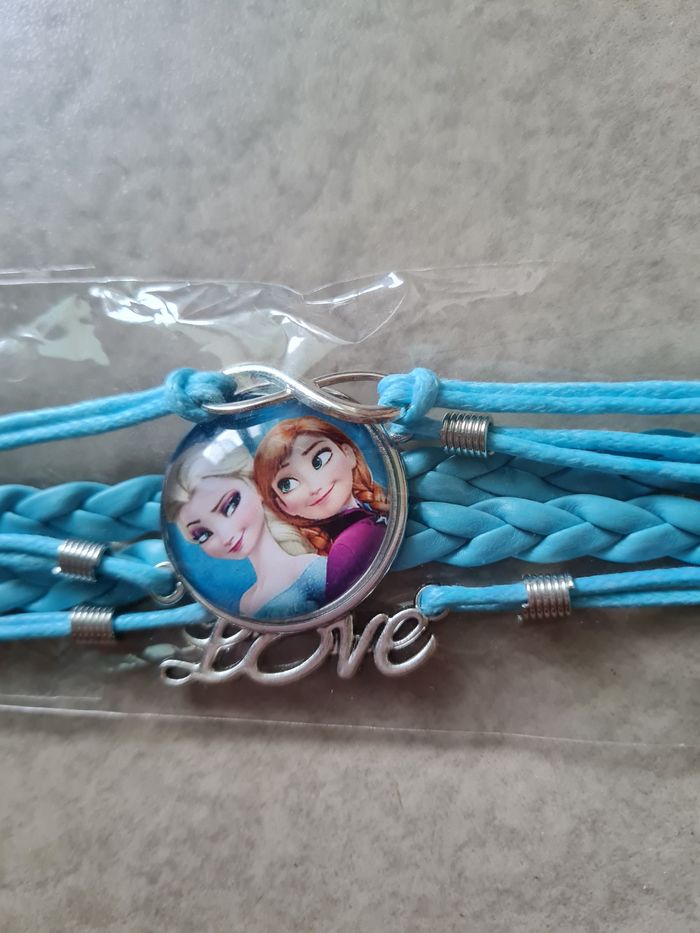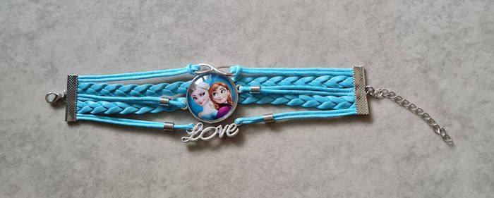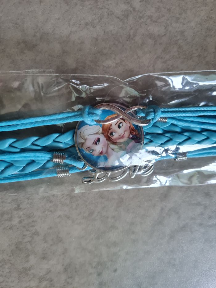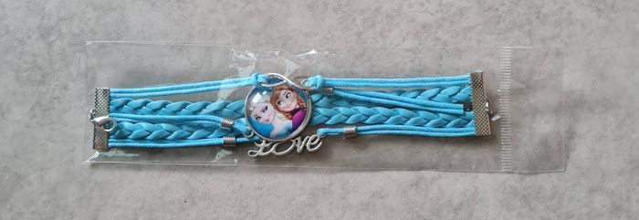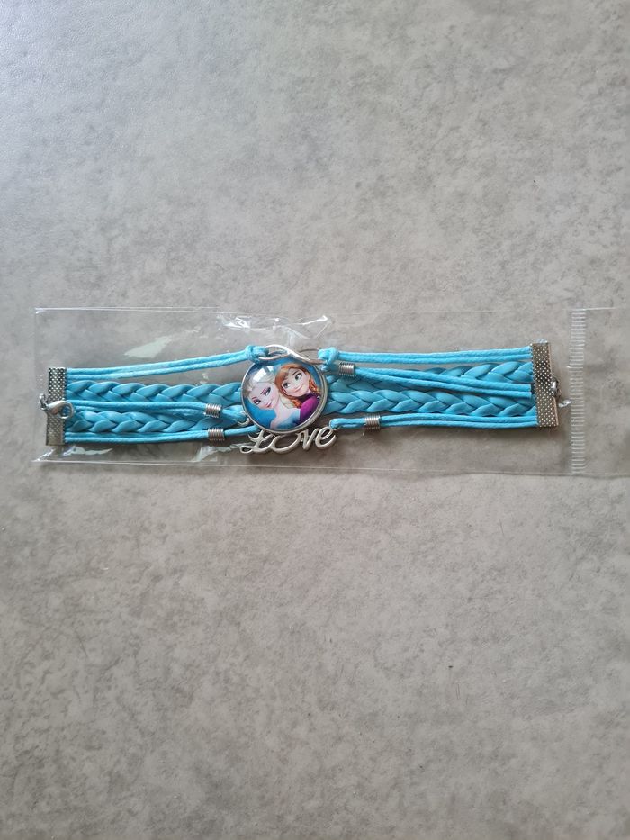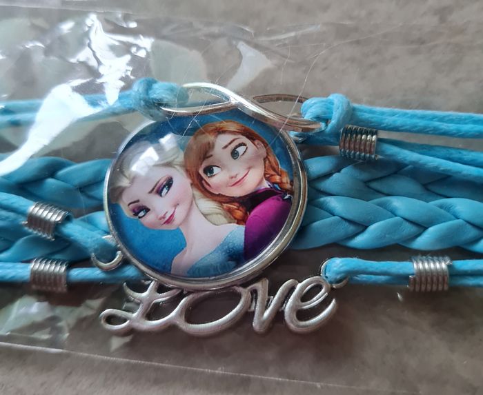 REINE DES NEIGES Elsa et Anna bracelet neuf emballé bleu clair et argenté longueur 16X2.5cm sans la chaîne réglable avec breloque infini et love #lesplacardsenfolieaccessoire