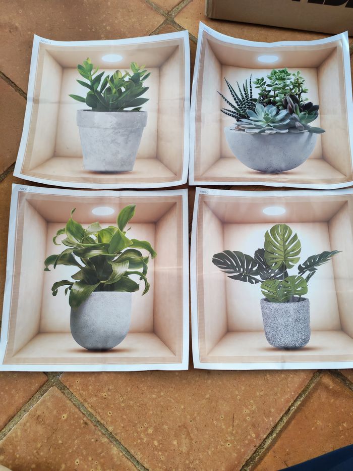 Stickers/autocollants de plantes pour mur, en bon état général, le lot n'est pas dissociable, comportent des pliures. Taille 30x30 cm, poids 200g environ.
