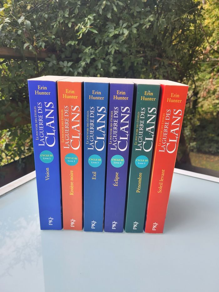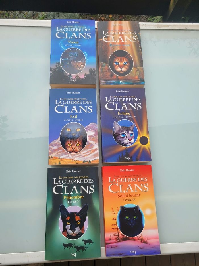 LA GUERRE DES CLANS LE POUVOIR DES ÉTOILES GRAND FORMAT CYCLE III - Livre I : Vision - Livre II : Rivière noire - Livre III : Exil - Livre IV : Éclipse - Livre V : Pénombre - Livre VI : Soleil levant En très bon état Je vends les cycle I, II, III et IV Mes autres livres ado et enfants : #livreadomooglou #livreenfantmooglou