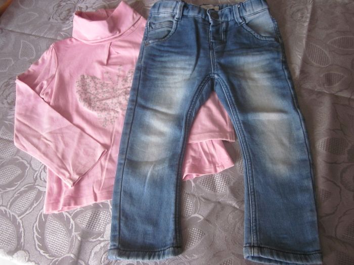 4/5 ans, jean 4 ans name it minimize taille ajustable + haut 5 ans vert baudet