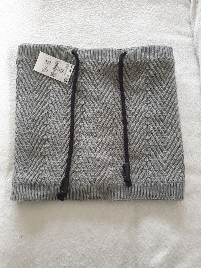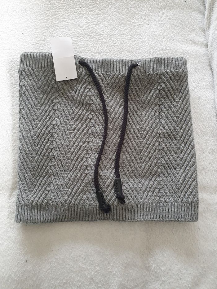 Tour de cou neuf. Mixte. Tout doux et très chaud. Serrage avec un lacet. Il mesure environ 35cm x 30cm de haut.