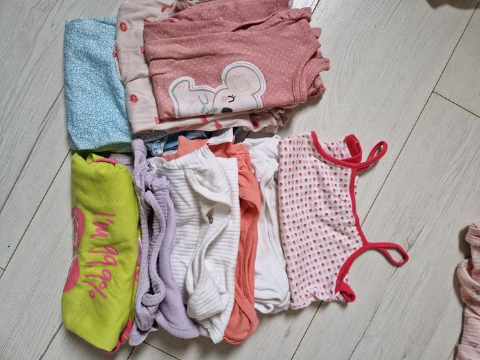 Lot de plusieurs vêtements pour bebe fille de 12 mois Plusieurs marques dont petit bateau et un Hugo boss Une dizaine de tee shirt / débardeurs Des pijama et bodys Quelques turbulettes Des pantalons /leggings + un short 3 ensembles dont 2 a fleurs Plusieurs combishort ou salopettes 6 robes dont une légère pour la plage par exemple 1 maillot avec couche intégrée Un maillot classique et une maillot combi Casquette et chapeau