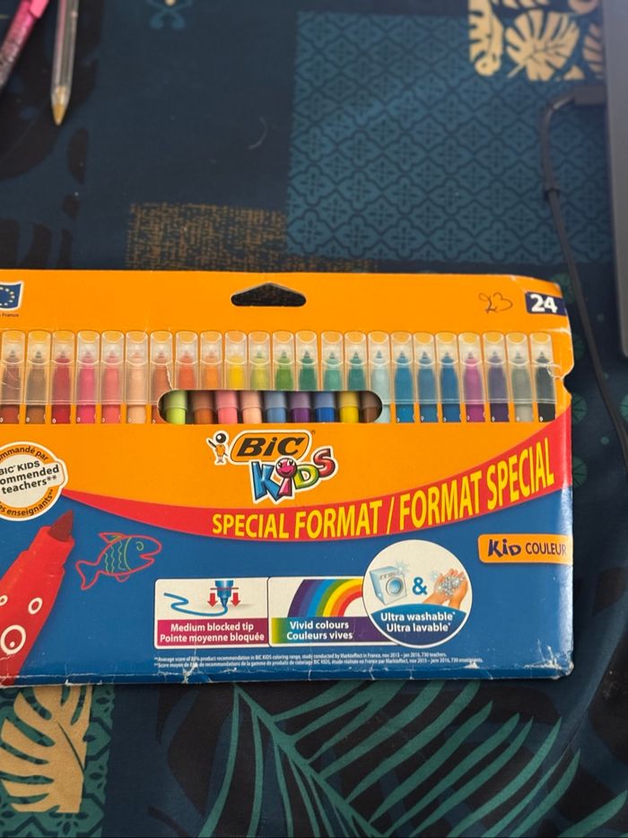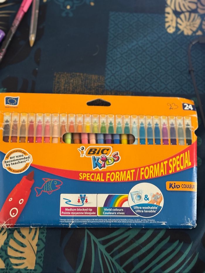 Je vends cette pochette de 23 feutres de la marque Bic Kids, parfaite pour les activités créatives des enfants.