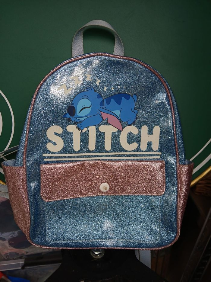 Sac à dos Stitch à paillette 30cm en bon état à cause d'une trace sur le bouton en métal