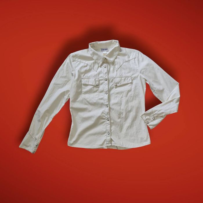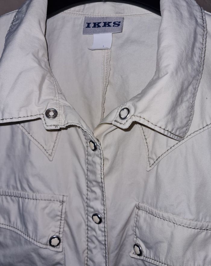 IKKS chemise crème boutons pressions petites fleurs sur poches, manches et boutonnière longueur 60cm épaules 38cm aisselles 47.5cm manches 62cm #lesplacardsenfolietaille40 ref7