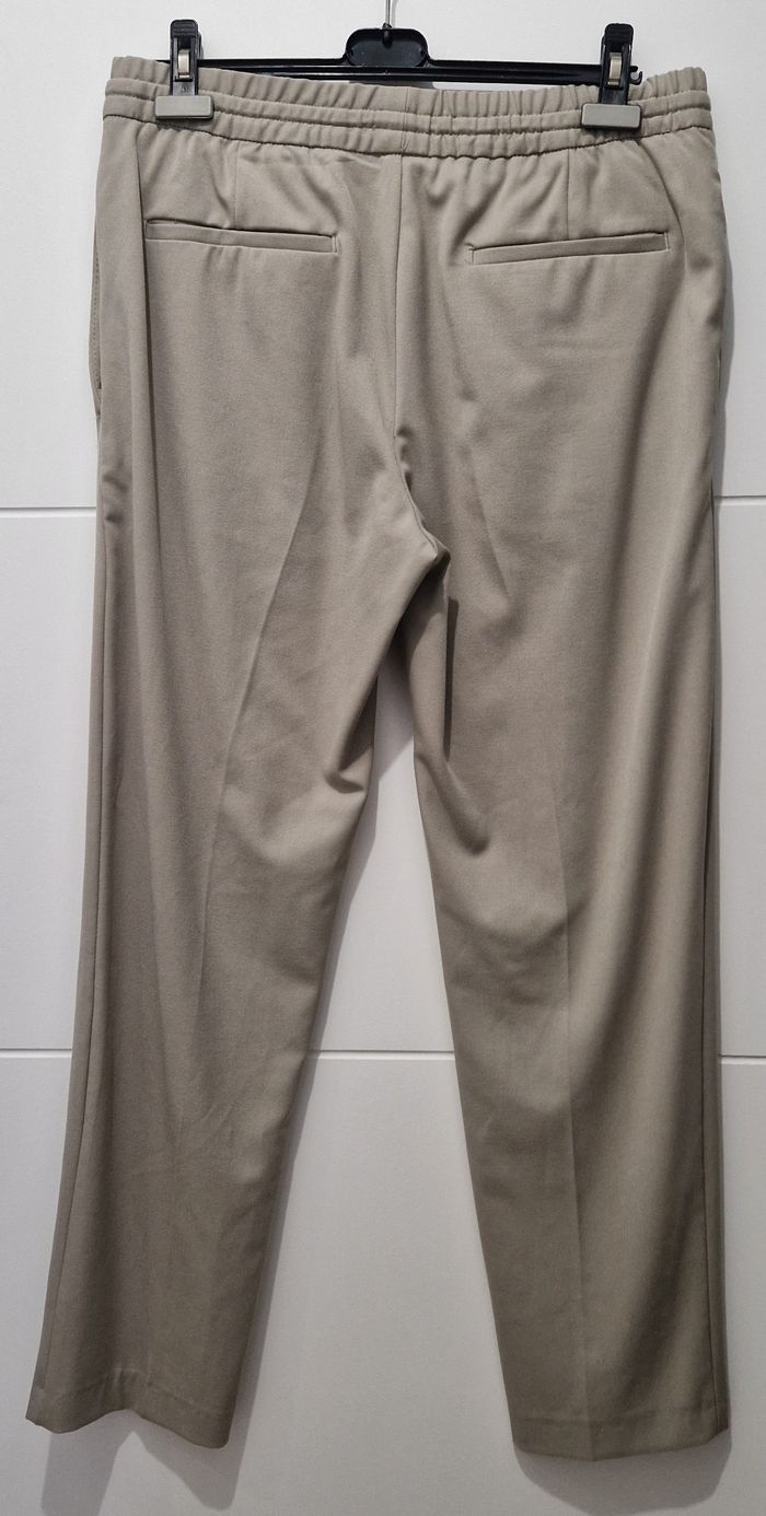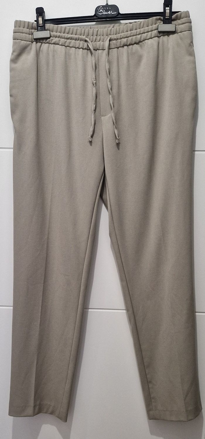 Pantalon de ville décontracté ZARA - tissu assez épais de belle facture - beige - Taille élastique de type jogging réglable par cordon. Poches cachées sur les côtés et poches passepoilées (encore cousues) à l’arrière - Taille L (mesure à plat de la taille 40 cm extensible) - longueur entrejambe 75 cm / mesure à plat au niveau de l'ourlet 19,5 cm - NEUF. #isa91vêtementshomme #isa91zara #isa91pantalons #isa91toutessaisons