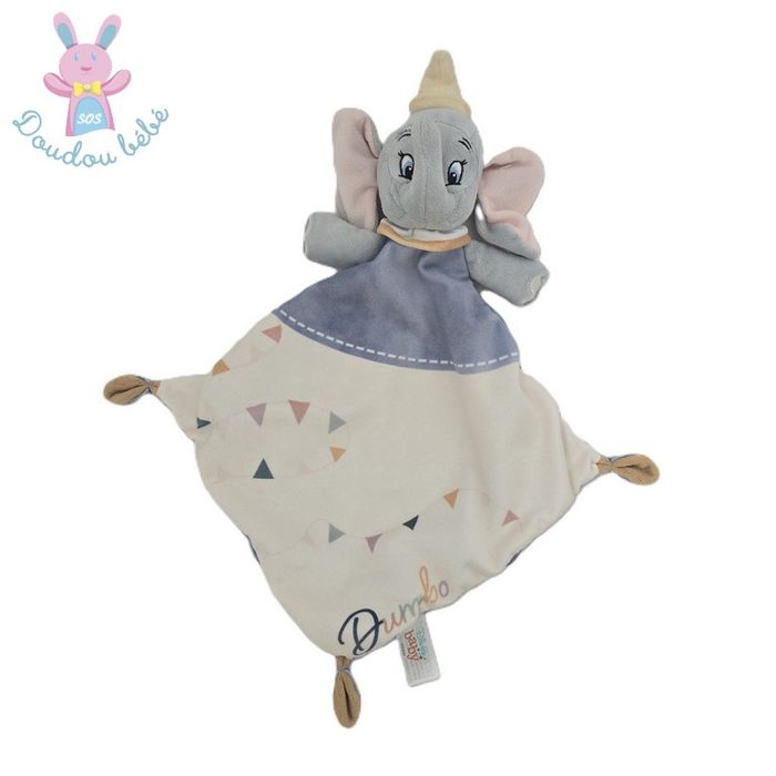 BOUTIQUE PRO SOS DOUDOU BEBE (+ de 3000 doudous en stock) ---------------------------------- Doudou plat éléphant DUMBO marque DISNEY Velours tout doux blanc gris rose bleu avec imprimé drapeaux (réf DIS-274B) Occasion très bon état #sosdoudoudisney #sosdoudouelephant
