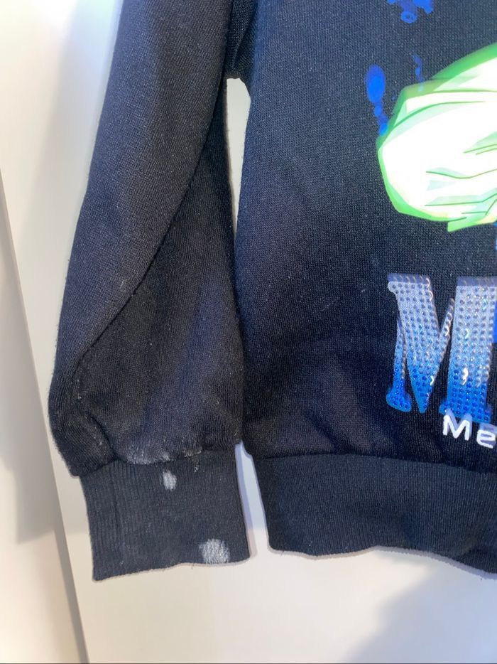 2 pantalons/ 3 pulls. 5 articles au total. Défaut dans les manches et déchire au cou pour le pull noir dragon ball-z (voir photo)!!