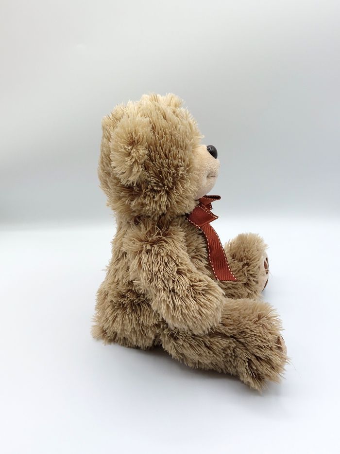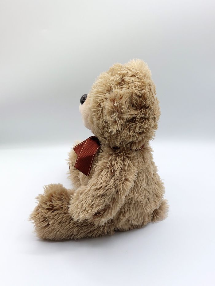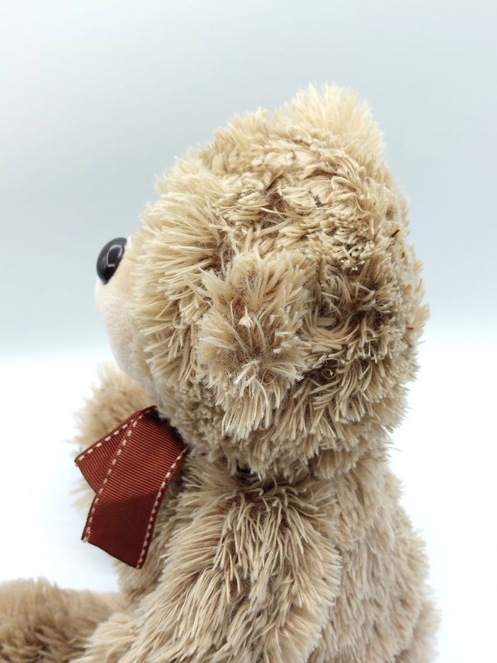 Peluche doudou ours beige marron PLANET PLUCH 25 cm assis nœud autour du cou - photo numéro 8