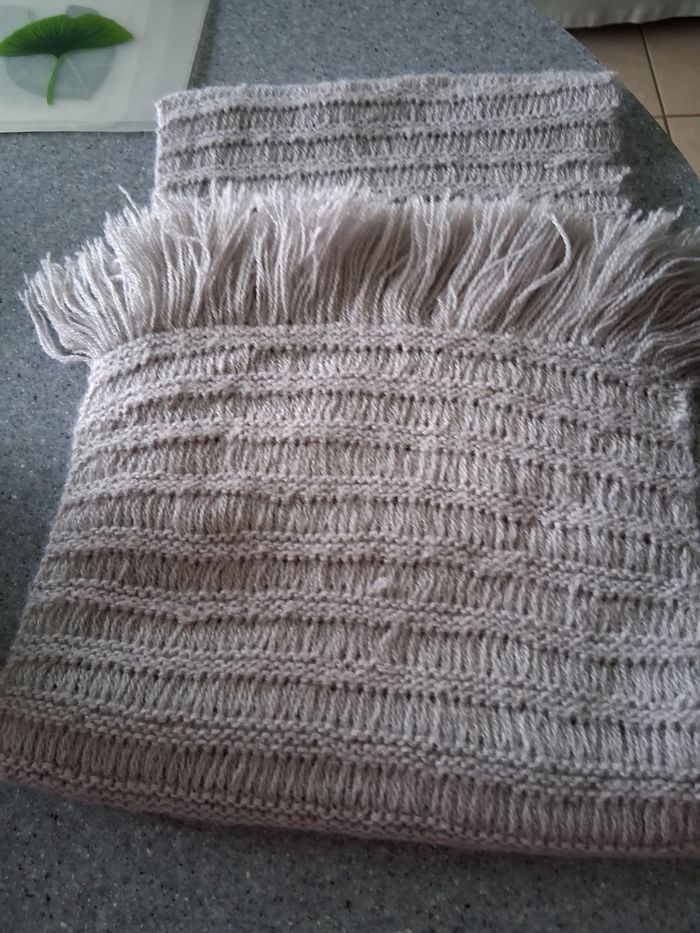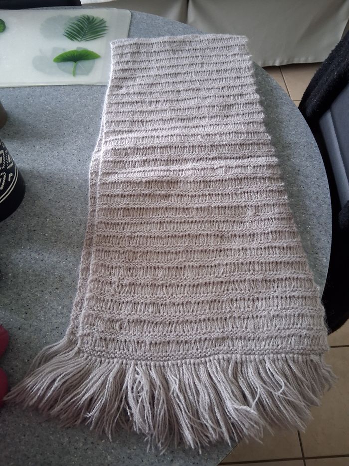 Grande écharpe tricoter maison avec franges Beige 140cm de Longueur 30 cm de large Excellent état