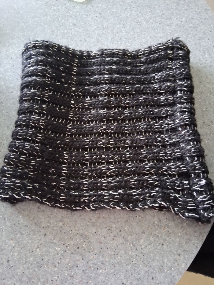 Tour de cou tricoter lainage acrylique Noir et argenté T- unique Largeur : 28 cm Longueur : 28cm Excellent état