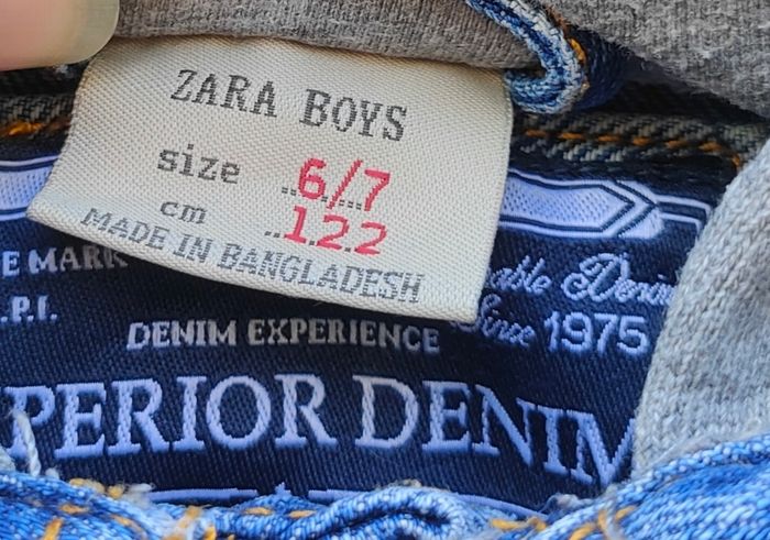 Blouson en jean bleu/gris avec capuche en très bon état de la marque Zara pour garçon taille 6/7 ans