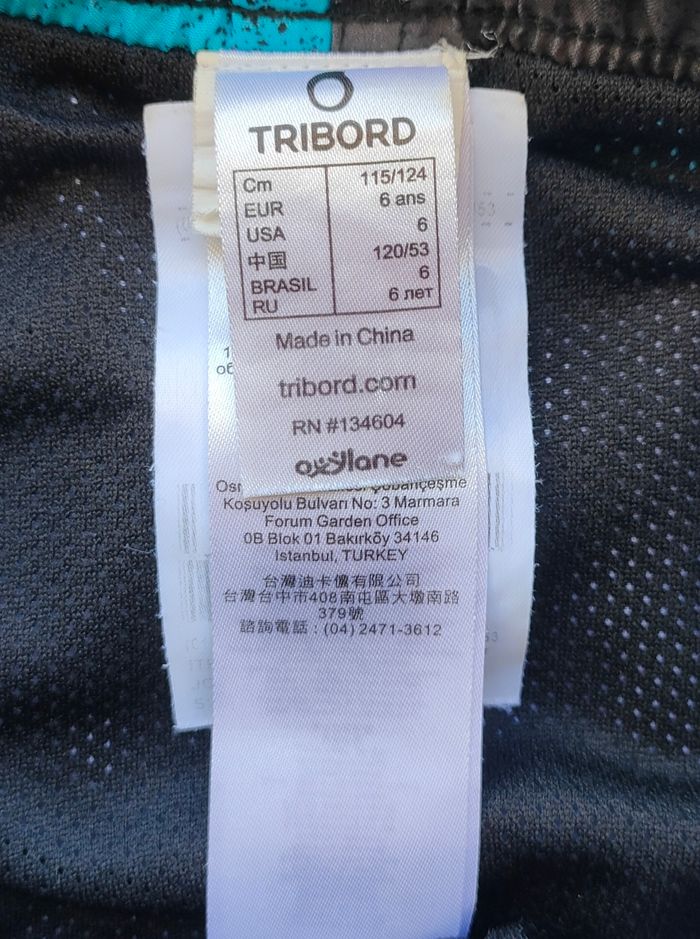 Short de bain noir/gris/bleu clair neuf jamais porté de la marque Tribord pour garçon taille 6 ans