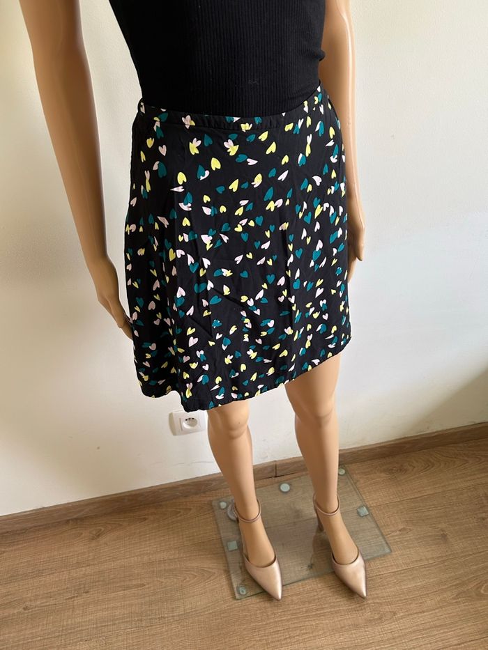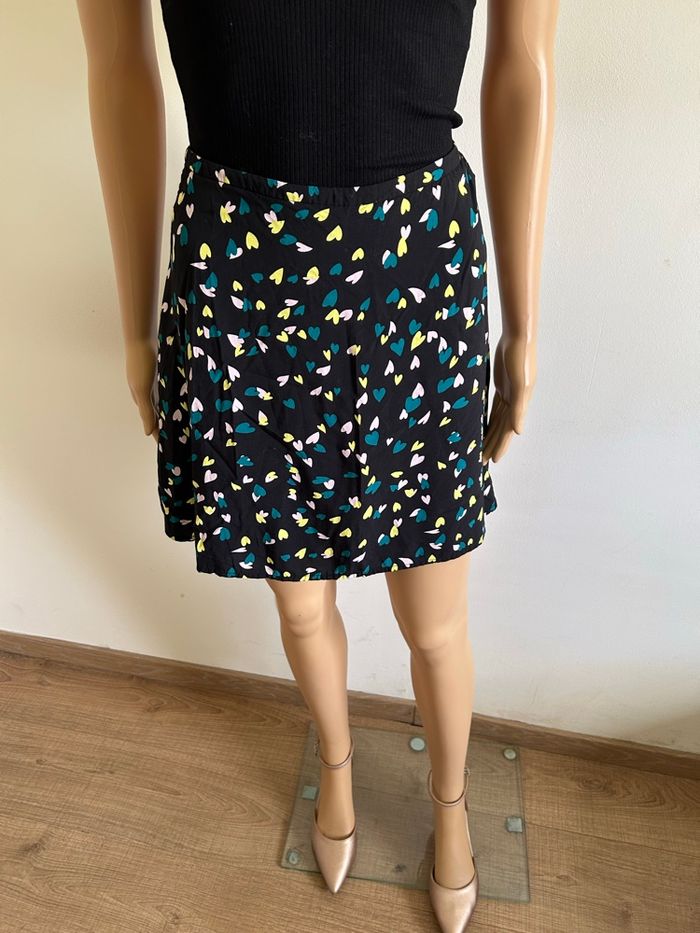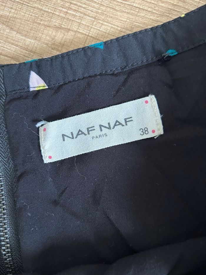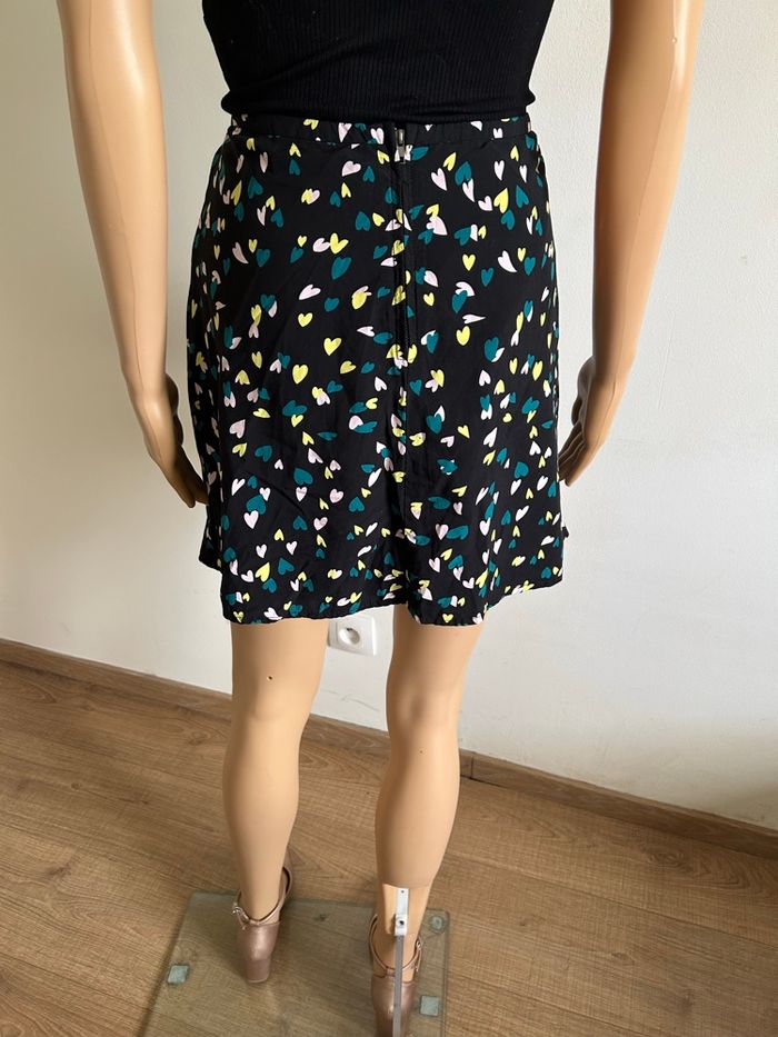Jolie jupe noire et imprimée, de marque Naf Naf. Fermeture dans le dos. Taille 38. Peu portée, en excellent état. taille 37 cms longueur 43 cms Étiquette intérieure de composition coupée