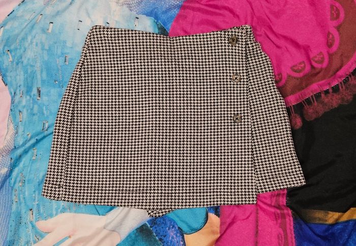 Jupe short pour fille. Motif pied de poule noir et blanc Taille élastique 6 ans 114/119 cm