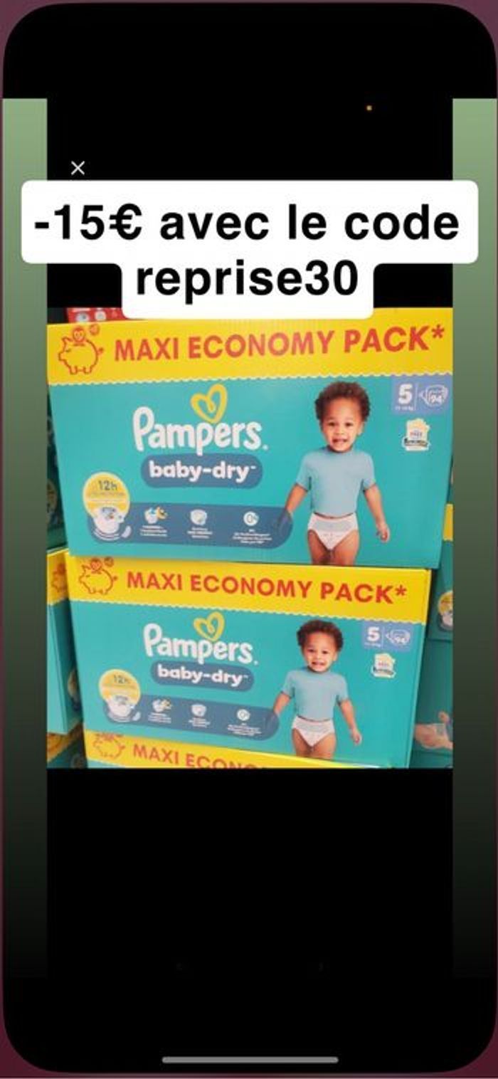 Le lot de deux paquets de couches Pampers baby dry taille 5