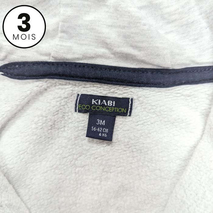 Sweat zippé à capuche / Gilet gris Taille : 3 mois / 56-62 cm / 6 kg Marque : Kiabi Très bon état #Lilith3mois