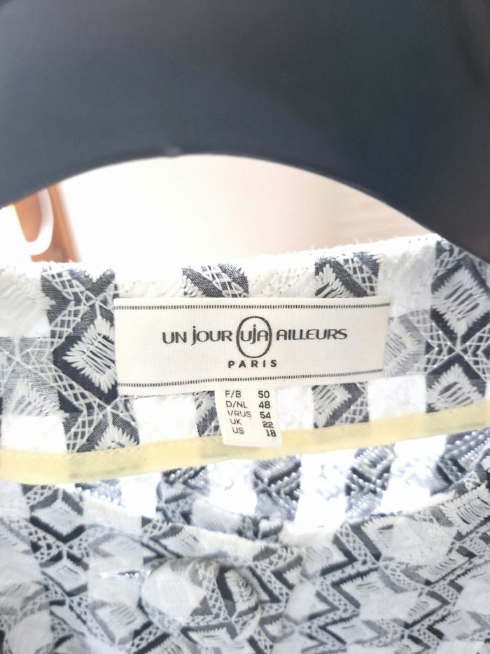 Veste femmevun jour ailleurs dessin beige et blanc avec broderie manches et poches
