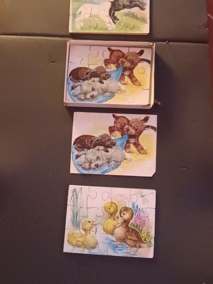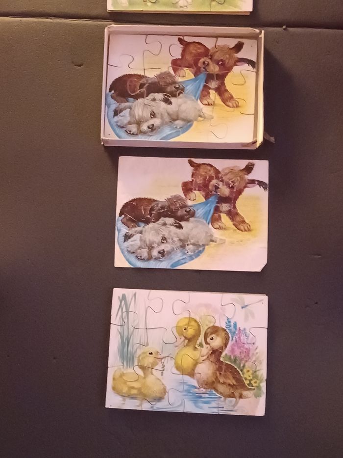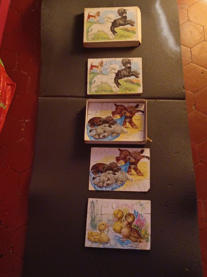 Anciens puzzles x 3 , en bois en état cf photos 15 cm x 20 cm env.
