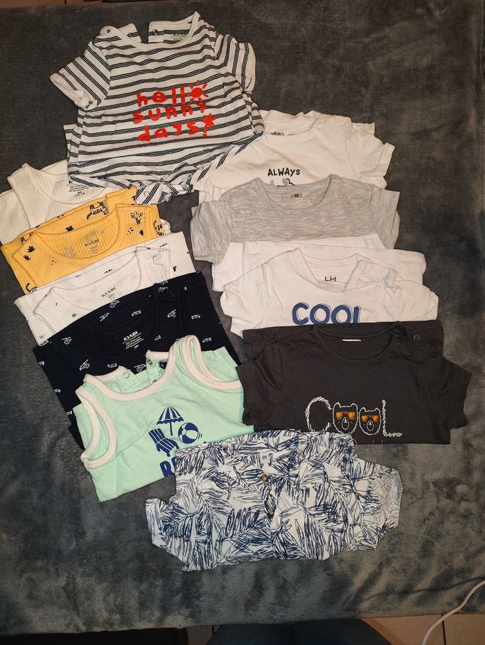 Lots garçons 6mois en très bon état 7 pijamas 8 bodys tee-shirt 2 bodys débardeur 2 bodys manche longues 6 maillots manche longue 1 pull 6 shorts 6 pantalons 5 débardeurs 4 tee-shirt 1 chemise 2 combi 2 ensembles (maillot m.l et pantalon) 3 ensembles tee-shirt short 1 veste 1 ensemble 4 pièces