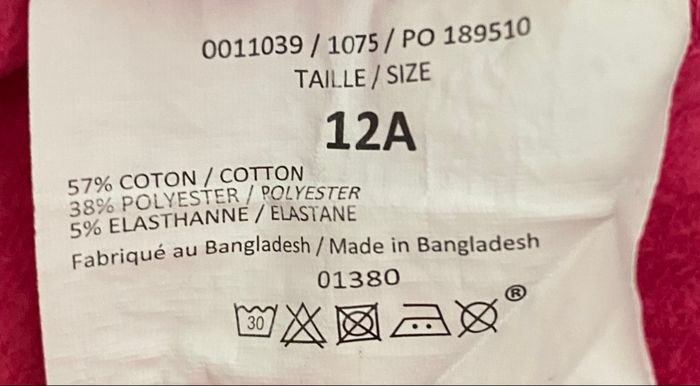 Pantalon sans tache 12 ans 57% coton 38% polyester 5% elasthanne