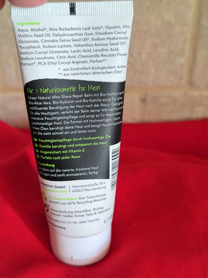 Baume après-rasage homme Capanova Ingrédients : Aloé vera Bio, Camomille Bio et Huile de graines de chanvre Bio 100 ml NEUF