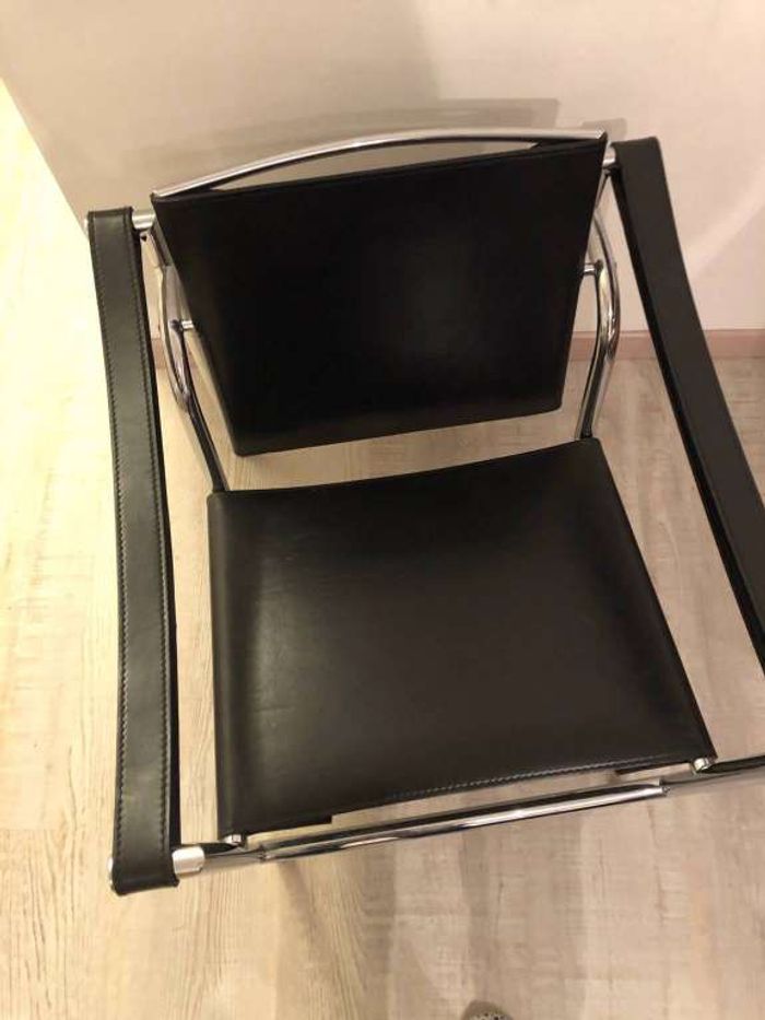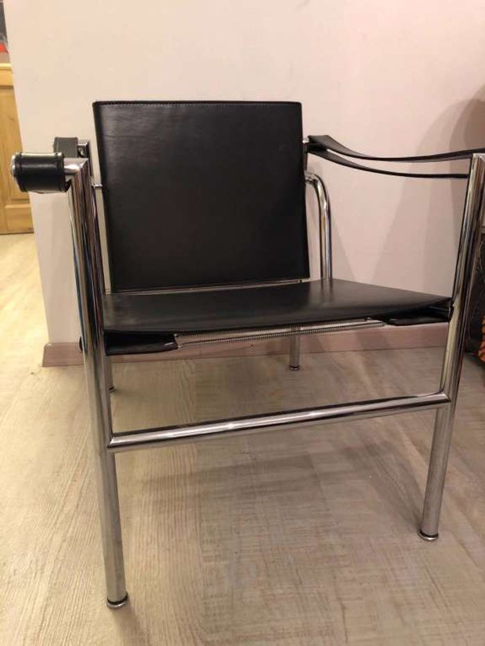 Paire de fauteuils LC1. Cadre tubulaire chromé et cuir noir d’origine. - photo numéro 5