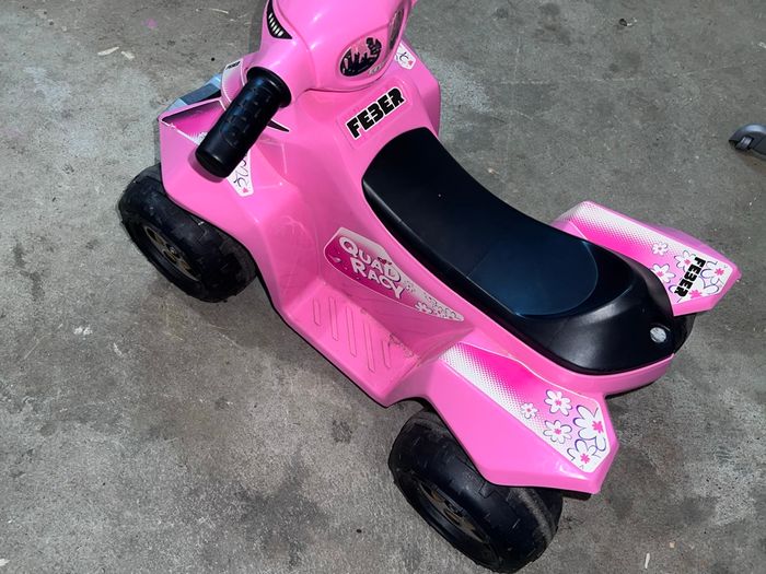 Marque : FEBER - Quad Racy rose, 6V avec une vitesse de 2 à 4 km/h. Suffisant pour que bébé s’amuse et tout aussi rassurant pour les parents.