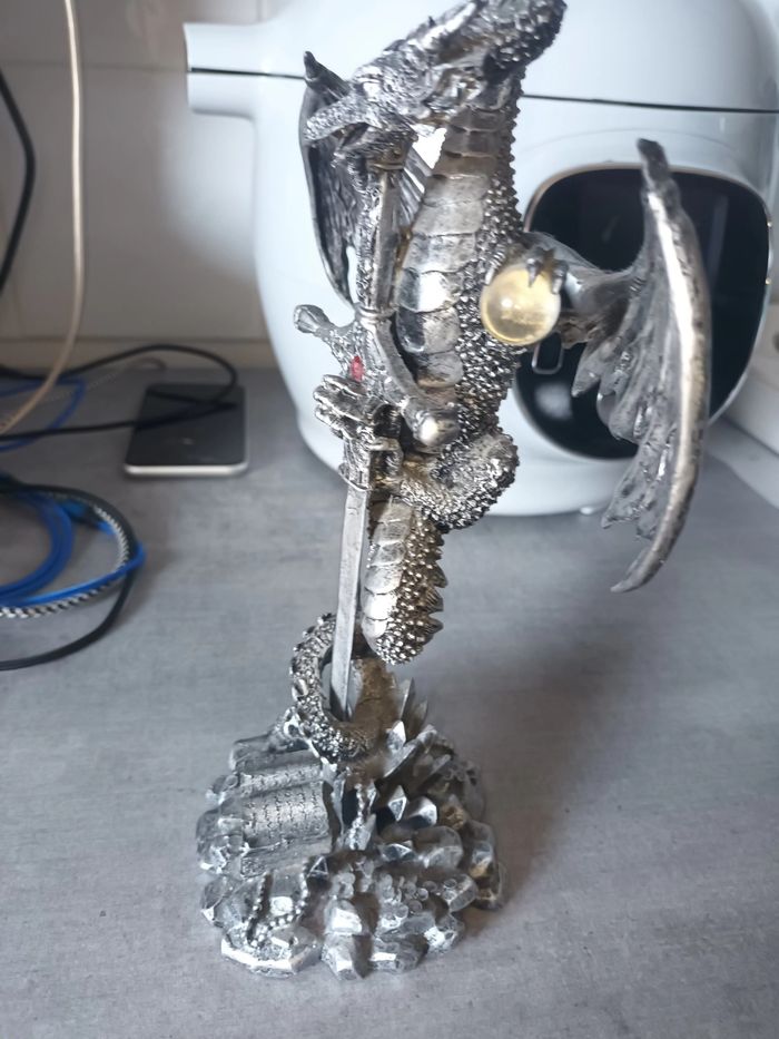 Vend Statue Dragon de couleur gris Métal de 25 Cm en super état